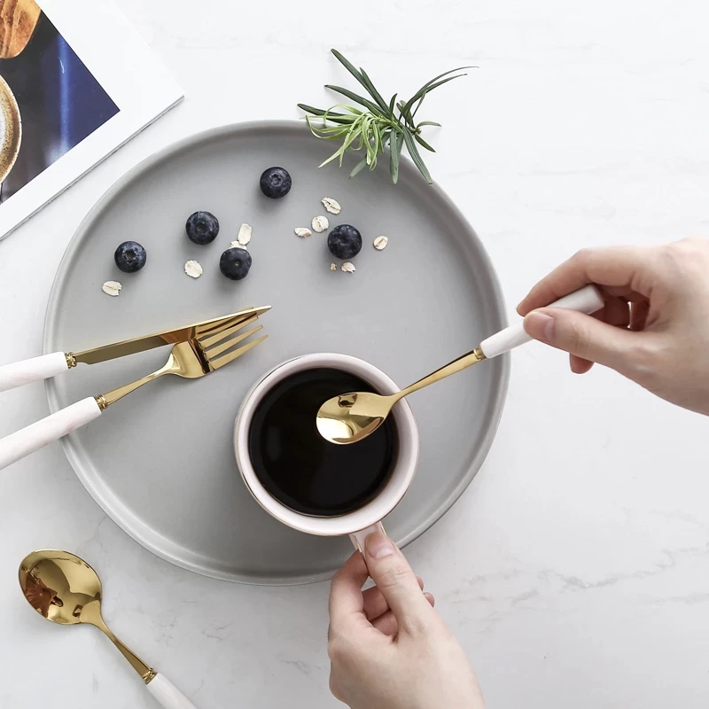 Marble Ceramic Dinner Set Cutlery Knives Forks Spoons Kitchen Dinnerware Stainless Steel Home Party Tableware Set